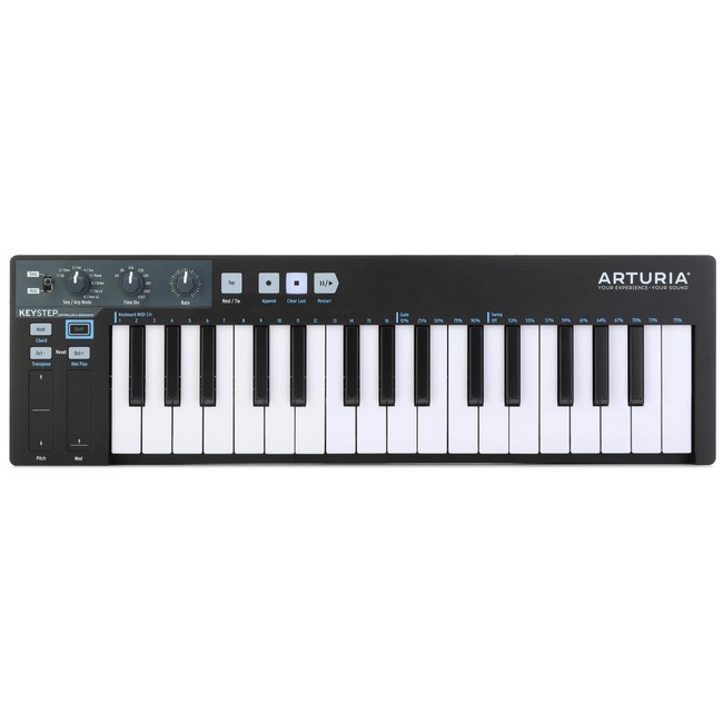 میدی کنترلر و سکوئنسر 32 کلاویه آرتوریا کی استپ KeyStep از میدی کنترلر های ساخته شده به دست کمپانی فرانسوی Arturia می باشد. نوع و وزن کلاویه های این میدی کنترلر پیانویی و سبک بوده و دارای 32 عدد کلاویه و 2.5 اکتاو می باشد.