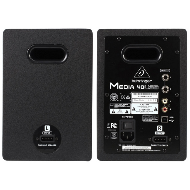 اسپیکر مانیتورینگ خانگی بهرینگر مدل Media 40USB از اسپیکرهای ساخته شده به دست کمپانی آلمانی behringer می باشد. سایز ووفر این اسپیکر ۴ اینچ بوده و توان خروجی نهایی آن ۱۵۰w وات می باشد. همچنین حداکثر میزان فشار صوتی این اسپیکر ۹۷ دسی بل (dB) در بازه فرکانسی ۷۰ هرتز تا ۲۰ کیلوهرتز می باشد.