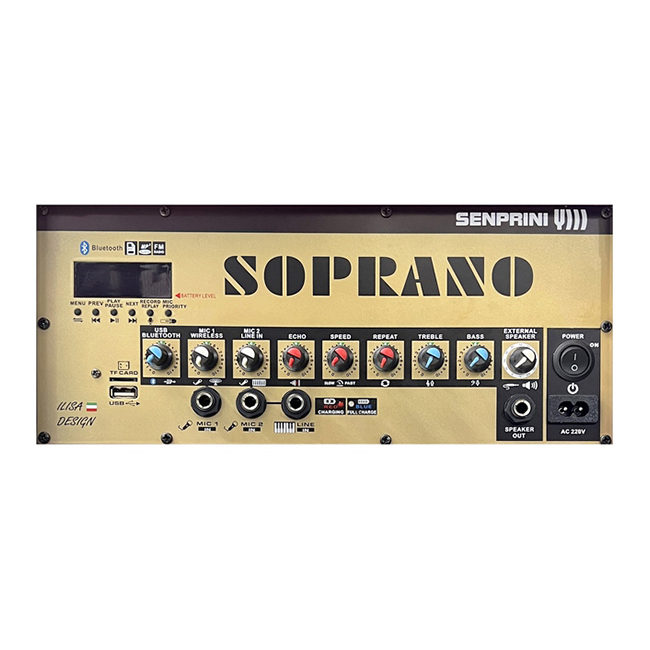 اکو همراه پرتابل 12 اینچ بزرگ شارژی اکو چنگ سوپرانو Soprano از اکو همراه های ساخته شده به دست کمپانی ایرانی Echo Chang می باشد.
