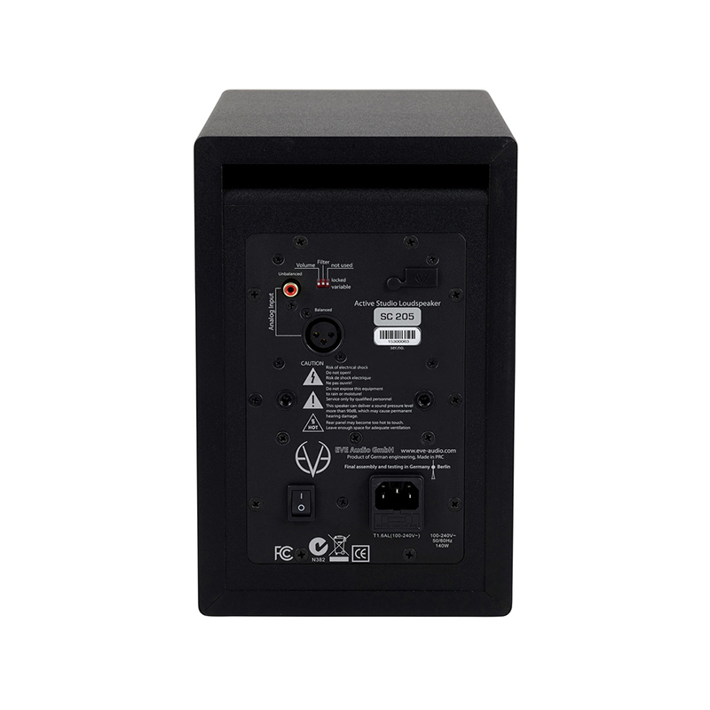 اسپیکر مانیتورینگ 5 اینچ استودیو ایو آدیو اس سی SC205 از اسپیکر های ساخته شده به دست کمپانی آلمانی EVE Audio می باشد. اندازه ووفر این اسپیکر 5 اینچ بوده و مجموع توان خروجی نهایی آن 100 وات می باشد. همچنین حداکثر میزان فشار صوتی این اسپیکر 111 دسی بل در محدوده پاسخ فرکانسی 53 هرتز تا 21000 هرتز می باشد.