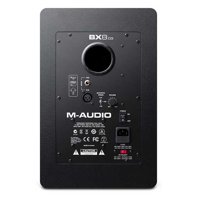 کمپانى M-Audio مى داند که هیچ دو فضاى شنیدارى مانند هم نیستند. بنابراین، مانیتورهاى BX-D3 صدا را نسبت به محیط شما سازگار مى کنند، و شما همیشه باسازى صدا را از نظر صوتى درست، حقیقى و دقیق تجربه خواهید کرد. به لطف سوئیچ کنترل فضاى آکوستیک براى تنظیم دقیق خروجى صدا بطور سازگار با فضاى استودیو، فرکانس هاى مشکل ساز بیس خنثى شده و تاثیر موج ها ایستاى مزاحم محدود مى شود. اسپیکر مانیتورهاى D3 طبق معمول اتصالات ورودى آنالوگ، کانکشن های XLR و TRS را در پشت دارند، و مى توانند به رابط هاى صوتى، میکسرها، دیوایس هاى DJ و غیره متصل شوند. M-Audio BX-D3 از هر لحاظ فوق العاده است و جانشین مناسبی براى سرى هاى قبلى است. با درایورهاى عالى، محفظه ى به دقت مهندسى شده، آمپلی فایر هایى با صداى قدرتمند، و اتصالات استاندارد، که کیفیت صدای بالایی ارائه مى کند که قابل اعتماد شما خواهد بود.