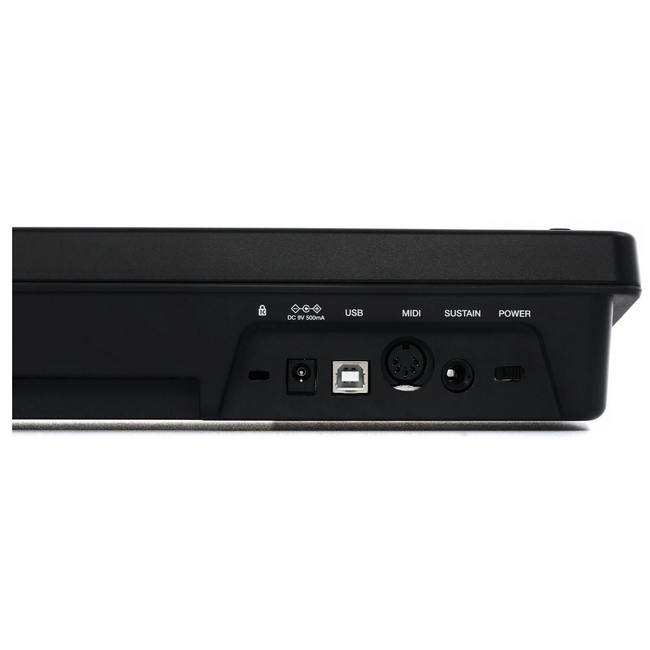 همچنین این میدی کیبورد مجهز به یک خروجی میدی با استاندارد ۵ پین است که برای اتصال به سخت افزارهای سینت و Sound Module های مورد علاقه ی شما در پشت بدنه تعبیه شده است. یک ورودی پدال نیز امکان اتصال انواع پدال ساستین اکسترنال را به شما میدهد می دهد. (مانند پدال ساستین M-Audio SP-2 که جداگانه قابل خریداری است)