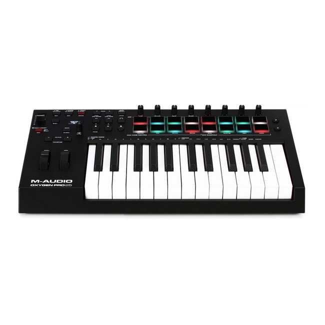 میدی کیبورد کنترلر ام آدیو مدل Oxygen Pro 25 یک میدی کیبورد کنترلر هوشمند با پارامترهای مختلف MIDI با قابلیت اتصال به سیستم های کامپیوتری از طریق درگاه USB با 25 کلید (دو اکتاو) کلاویه ی نیمه سنگین پیانویی است که توسط کمپانی صاحب نام ام آدیو M-Audio تولید شده است. این میدی کیبورد کنترلر به شما امکان می دهد موسیقی مورد نظر خود را در نرم افزارهای آهنگسازی متداول به راحتی تولید کنید، و با داشتن امکانات متنوع ایده های خود را پیاده سازی نمایید.