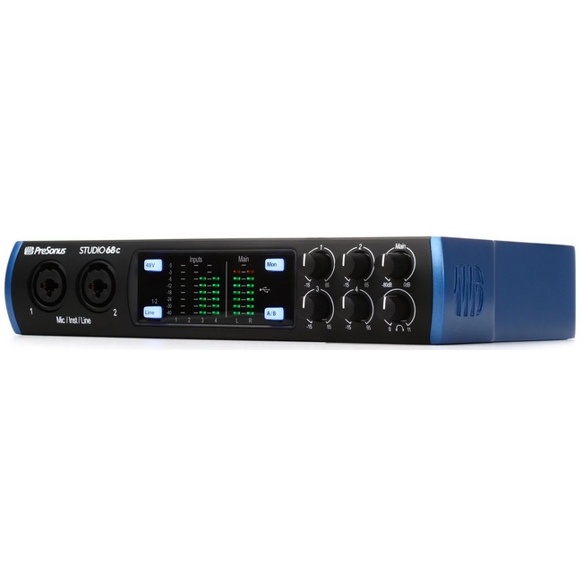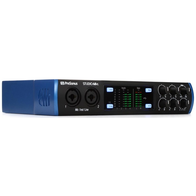 کارت صدا یو اس بی پریسونوس مدل Studio 68c از کارت صدا های ساخته شده به دست کمپانی آمریکایی PreSonus می باشد. تفکیک پذیری و نرخ نمونه برداری این کارت صدا ۲۴ بیت در 192 کیلو هرتز بوده و تعداد ورودی میکروفون آن 2 عدد می باشد. همچنین نوع اتصال این کارت صدا یو اس بی Type-C و سیستم مورد نیاز آن Mac, Windows می باشد.