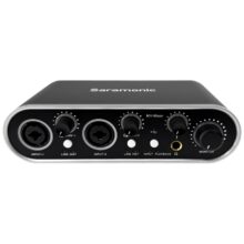 کارت صدا یو اس بی استودیو سارامونیک ام وی میکسر MV-Mixer از کارت صدا های ساخته شده به دست کمپانی چینی Saramonic می باشد. تفکیک پذیری و نرخ نمونه برداری این کارت صدا 24 بیت در 192 کیلو هرتز بوده و تعداد ورودی میکروفون آن 2 عدد می باشد. هم چنین نوع اتصال این کارت صدا یو اس بی Type-C و سیستم مورد نیاز آن Mac, Windows می باشد.