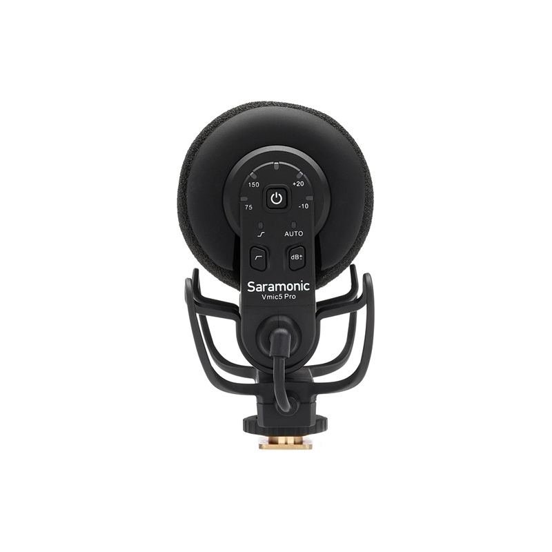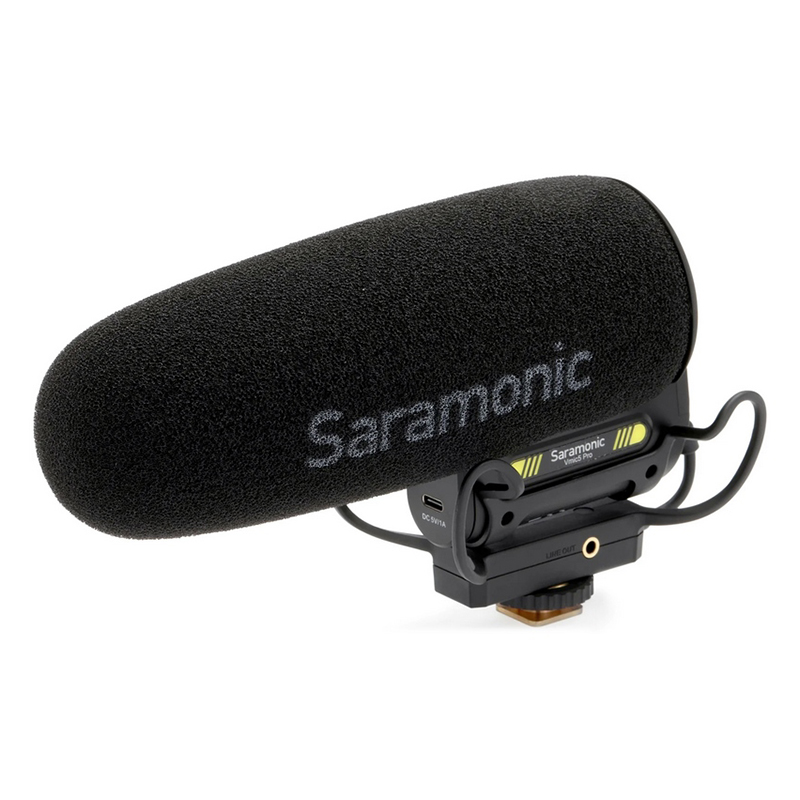 میکروفون دوربین شاتگان سارامونیک وی میک فایو پرو Vmic5 Pro از میکروفون های ساخته شده به دست کمپانی چینی Saramonic می باشد. کپسول این میکروفون کندانسور بوده و دارای الگوی قطبی سوپر کاردیوئید می باشد. همچنین امپدانس خروجی این میکروفون برابر با 200 اهم و محدوده پاسخ فرکانسی آن 20 تا 20000 هرتز می باشد.